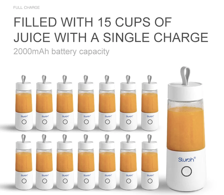 With a built-in 2000mAh battery and charging capacity of 3 hours you can make up to 15 cups of juices, milkshakes, and margaritas and that too nonstop. Furthermore, you can also use the USB cable to supply power and continue to slurshing more drinks if required.