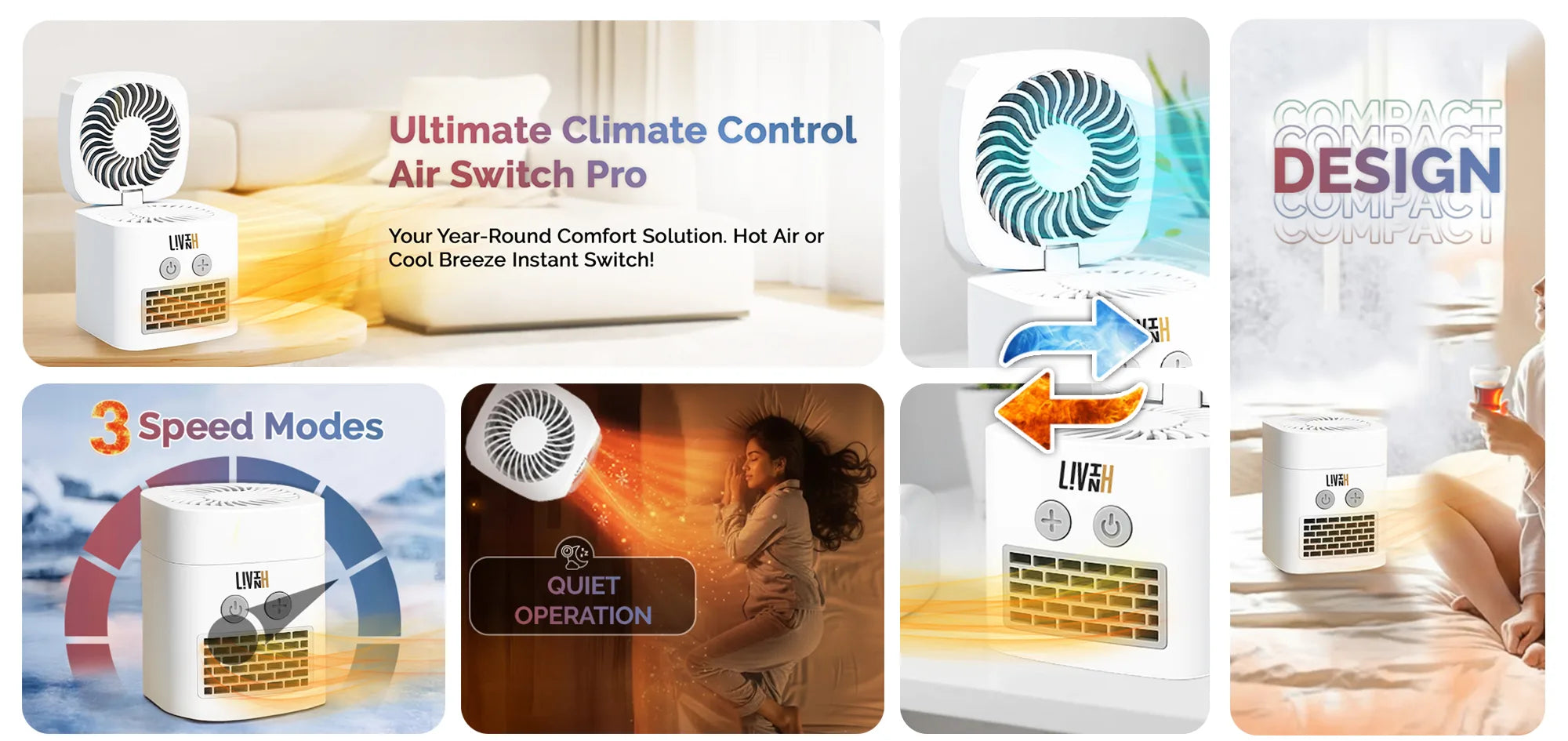 Simply lift the lid for cooling mode or close it for heating mode.