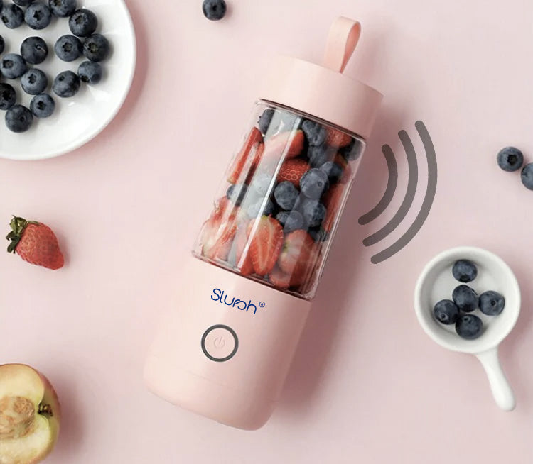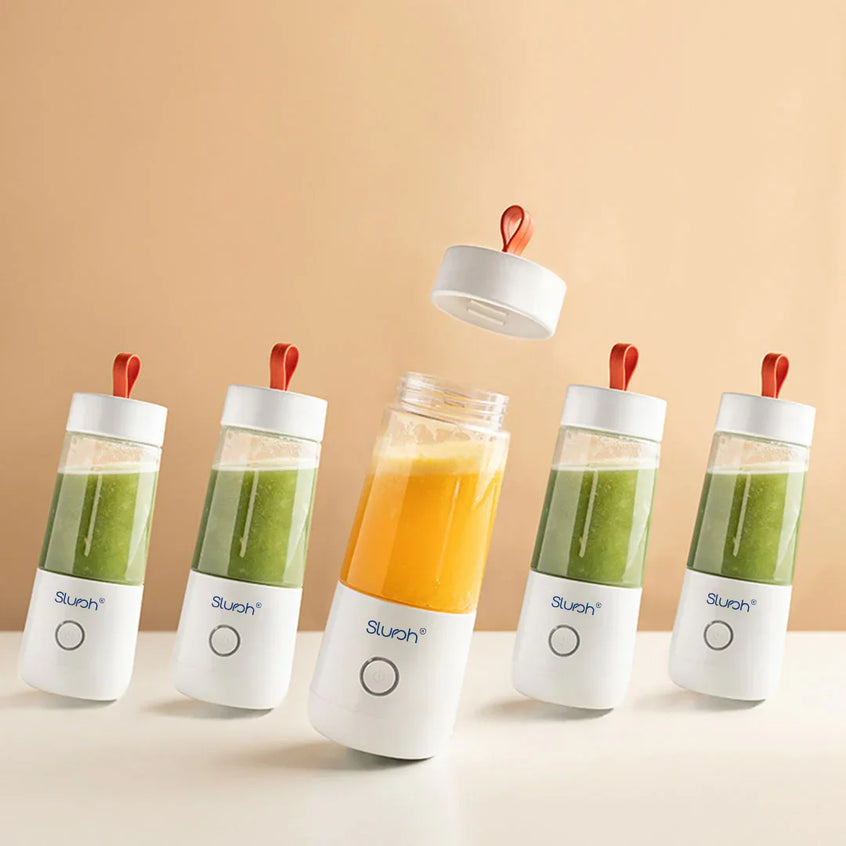 Once Slursh Bolt -350 ML Blender is fully charged, it is ready to make your favorite smoothies, juices and much more. You need to press and hold the power button, the White LED will blink 3 times and slurshing will begin. To stop, you need to press and release the power button again to stop.